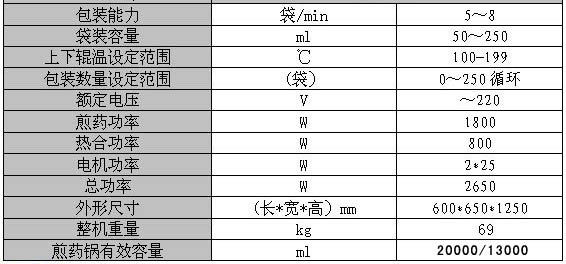 | 功能特性 草藥煎制、包裝集為一體,居國內首創??煞奖愦髣┝?、多處方的煎藥以及煎藥過程中要求加(后下)的煎制及包裝。 電子控制采用數字化技術,且具有醒目的數字顯示與聲響提示。草藥煎制及過濾裝置,采用優質的高硼硅玻璃不銹鋼孔網精密制作,能清楚地觀察草藥的煎制過程。 電控盒符合人工程學設計,位于箱體右上方,高度適中操作方便,防水可靠。 采用粘合強度高,衛生專用的塑料薄膜復合帶,并內藏式安裝,便于高速和操作。 儲液槽位于箱體頂面前部,且配有可開合蓋,便于觀察和清洗。 本機采用優質進口流量傳感器,使自動計量上水誤差小于3%。 管路具有減壓裝置,安全可靠。 機器前門安裝有透明有機玻璃窗,方便觀察包裝情況。 整機外形緊湊,便于運輸及安置。 微壓前藥:煎藥效果比常壓更透切。 兩次煎藥:煎藥效果比一次煎藥更優良。 乏汽處理系統:乏汽散熱器后成為冷凝水,大大減少了藥味、污染。 產品參數